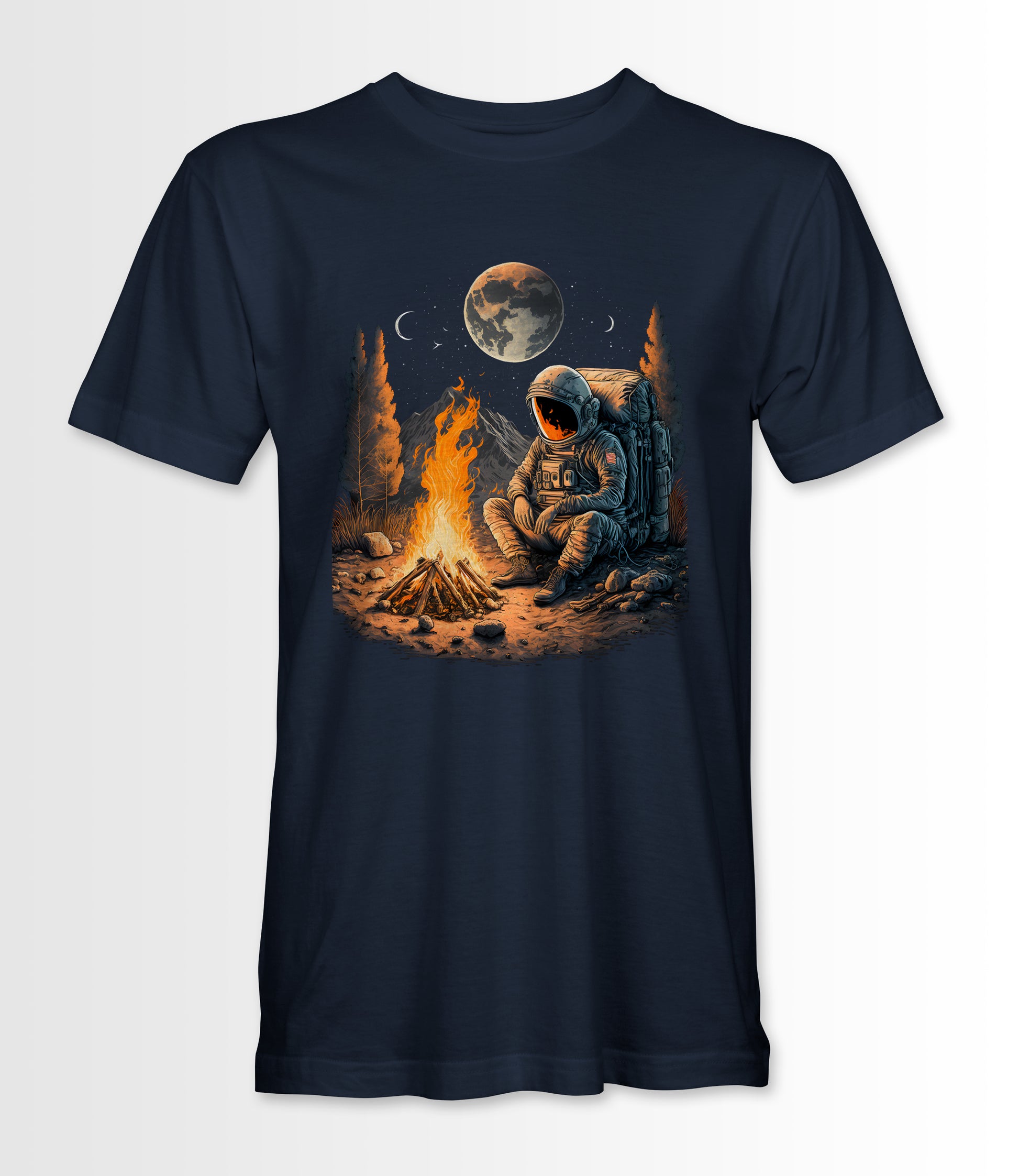 Embark on a cosmic camping trip with this graphic tee, where the wonders of space exploration meet wilderness survival. This shirt features our space traveller gathered around a cozy campfire, exchanging the cold vacuum of space for a warm, crackling blaze under a star-studded sky. The "Rocketman vs. Wild" tee is a tongue-in-cheek tribute to adventurers everywhere, whether you're conquering galaxies or just grappling with the call of the wild. So, gear up, brave fashionista, and let this shirt be your trusty companion on every style expedition that lies ahead!