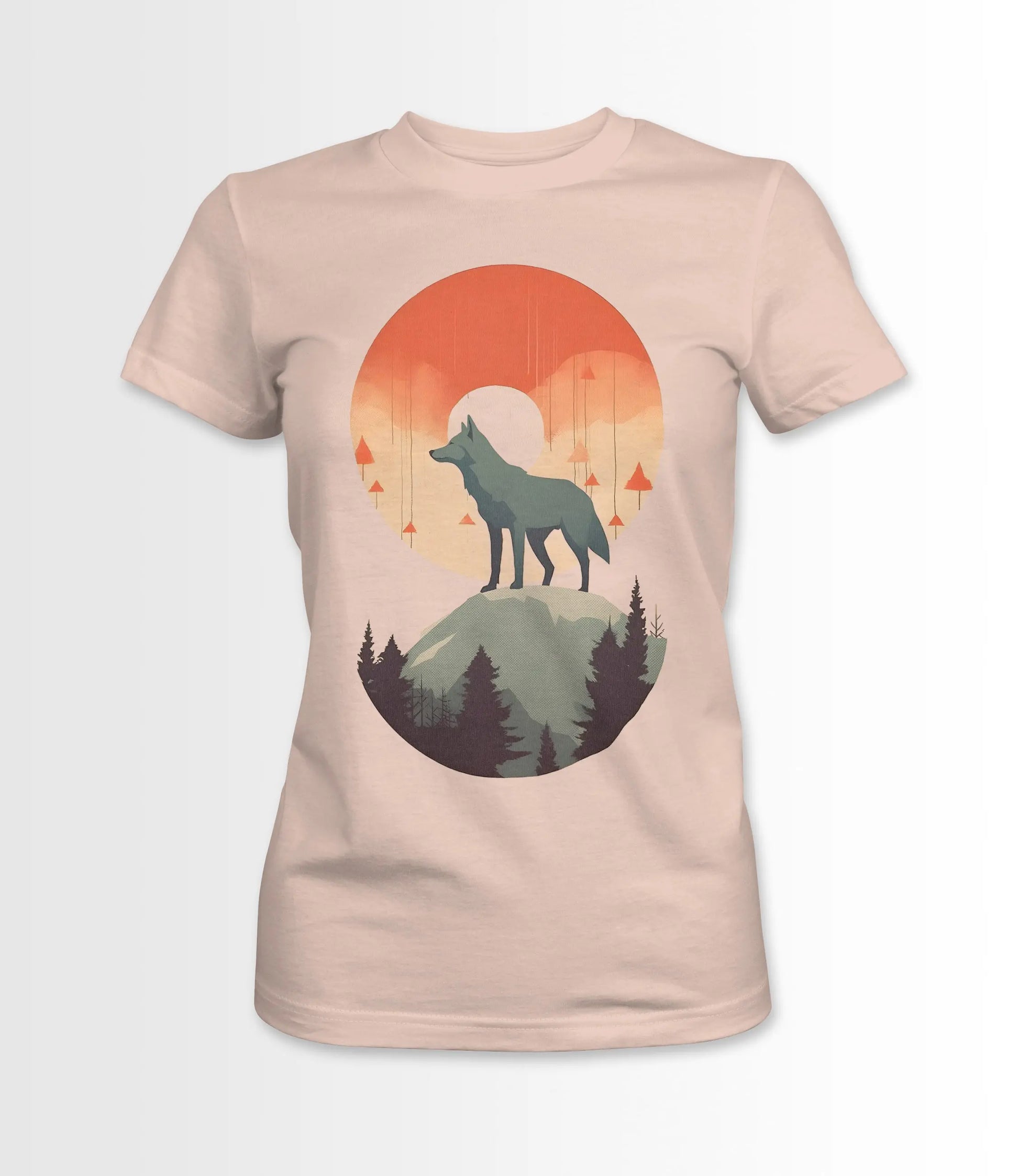 Discover "The Mountain King," a t-shirt that encapsulates the allure of the wilderness and celebrates the untamed essence of nature's royalty. This enigmatic design showcases a wise wolf surveying its mountainous domain under a gently rising sun. The delicate fusion of pale orange, green, and yellow hues imparts a vintage charm to this abstract artwork, inviting you to traverse the boundaries of your imagination. Wrap yourself in the spirit of adventure and let your inner alpha emerge with this remarkable, conversation-starting piece that will redefine your wardrobe.